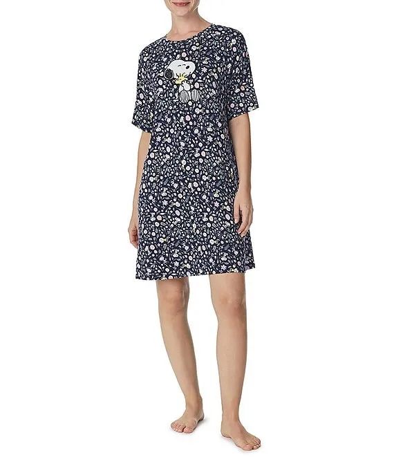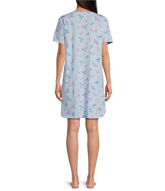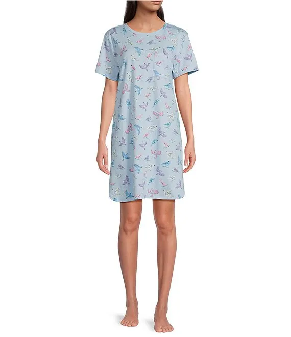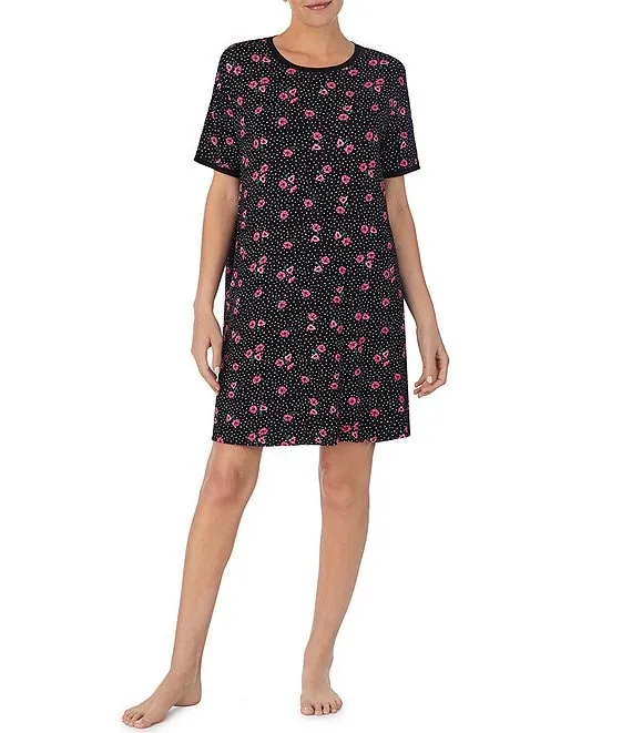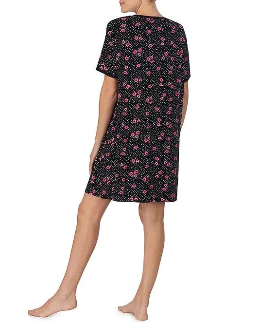Short Sleeve Round Neck Knit Floral Dotted Sleepshirt