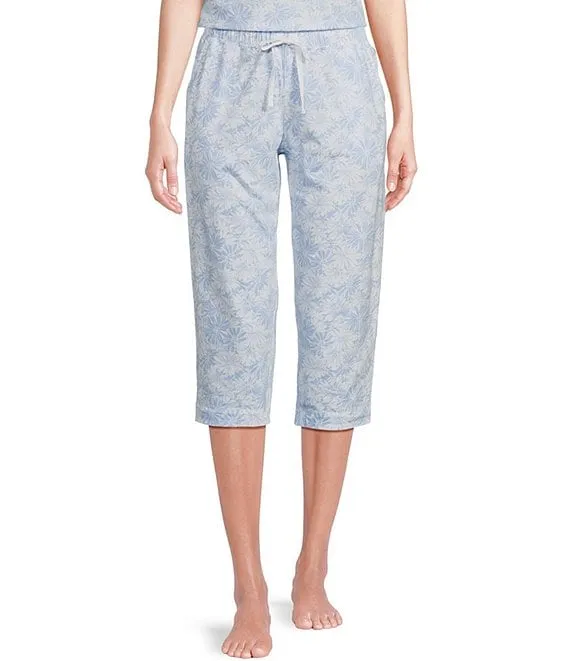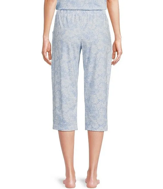 Tonal Daisy Print Knit Drawstring Tie Coordinating Sleep Pant