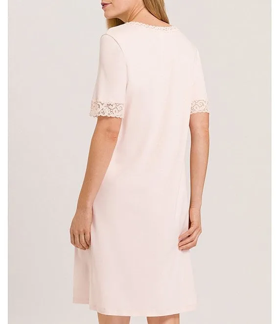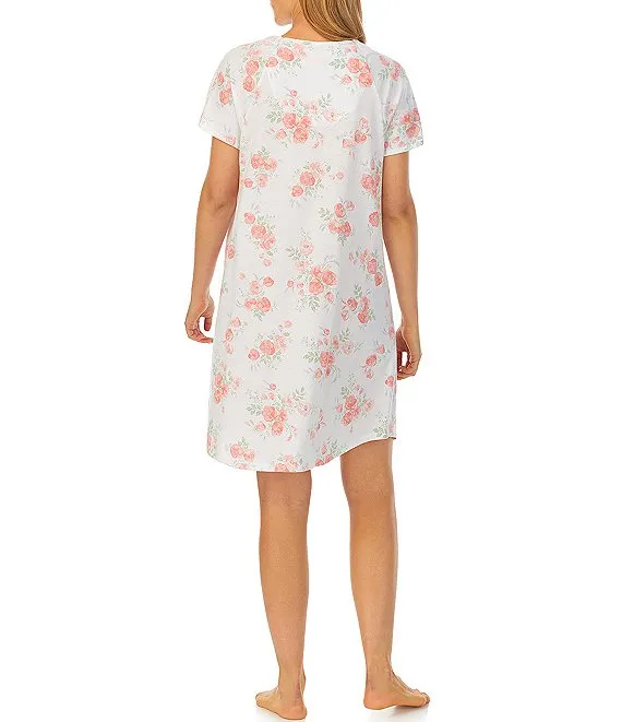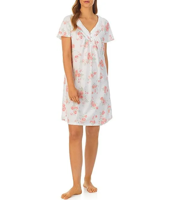 Short Sleeve V-Neck Cotton Knit Floral Short Nightgown
