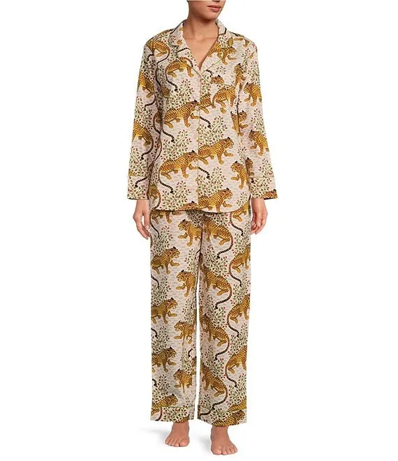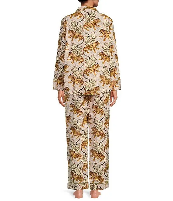 Woven Bagheera Leopard Print Long Sleeve Notch Collar Pajama Set
