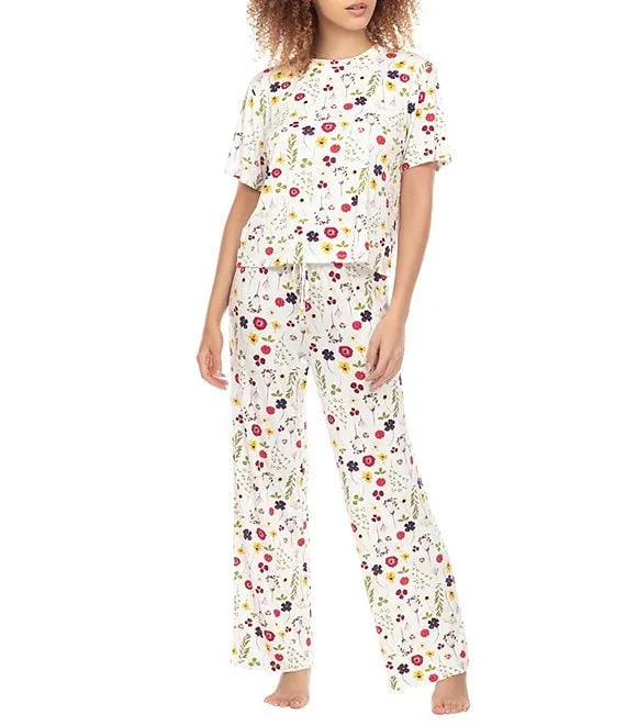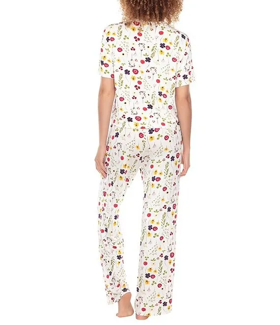 All American Floral Print Jersey Knit Crew Neck Short Sleeve Pajama Set