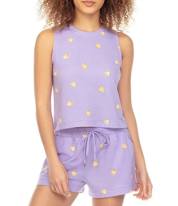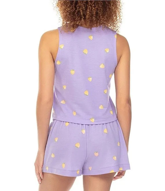 Strawberry Print Off Days Shorty Knit Pajama Set