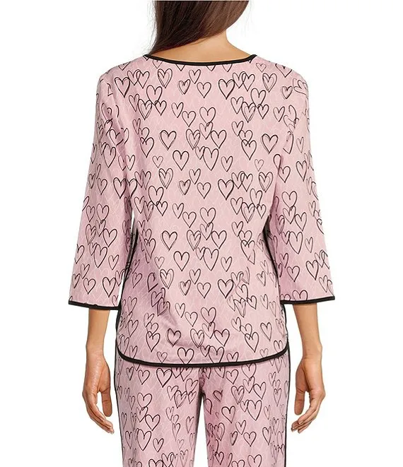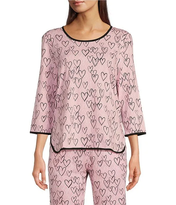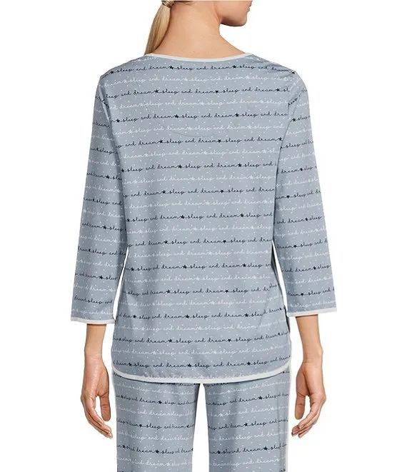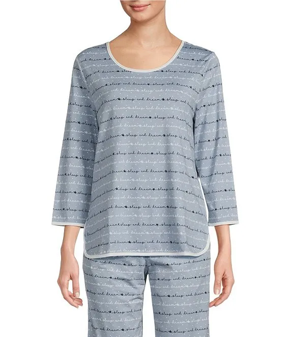 Sleepy Words Print Scoop Neck 3/4 Sleeve Knit Coordinating Sleep Top