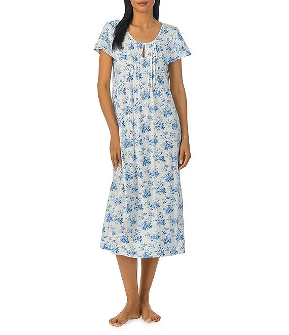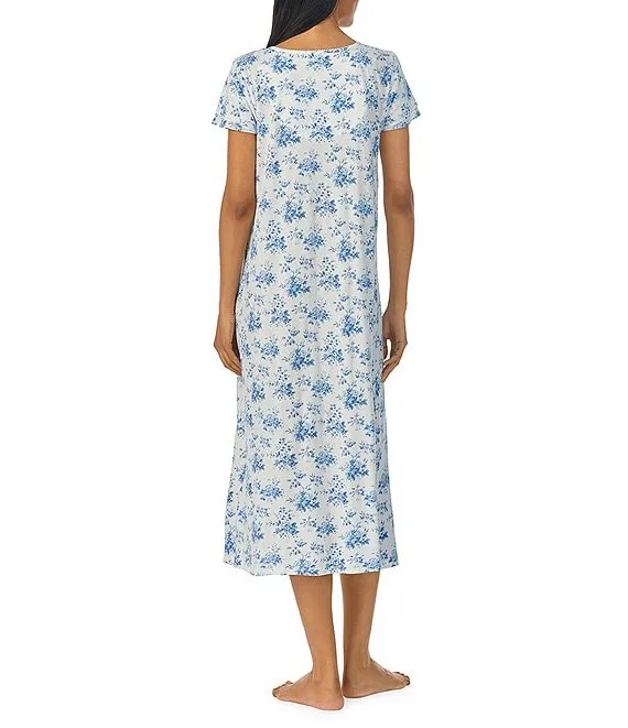 Lauren Ralph Lauren Knit Floral Double Flutter Sleeve Ballet Nightgown