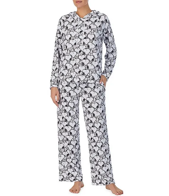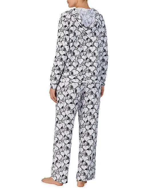 Allover Snoopy Print Long Sleeve Hoodie & Wide Leg Pant Pajama Set