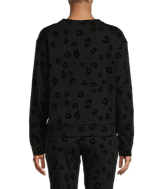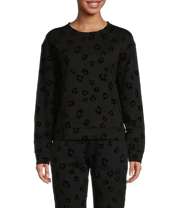 Animal Flocked Printed Long Sleeve Crew Neck Coordinating Sleep Top