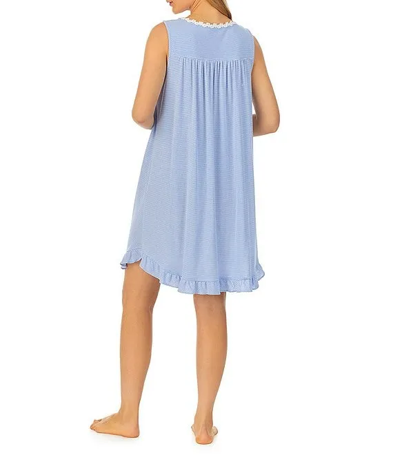 Yarn Dyed Striped Print Sweetheart Neck Sleeveless Short Knit Chemise