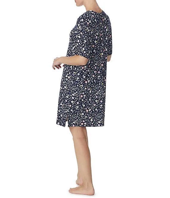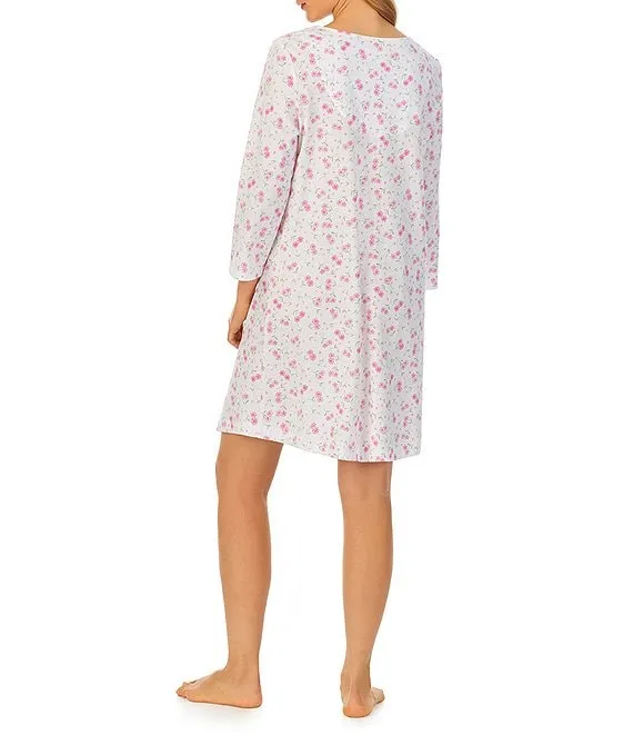 Floral Cotton Jersey 3/4 Sleeve V-Neck Nightgown