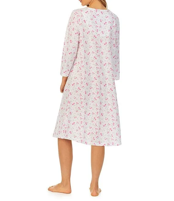 Floral 3/4 Sleeve V-Neck Cotton Jersey Waltz Nightgown