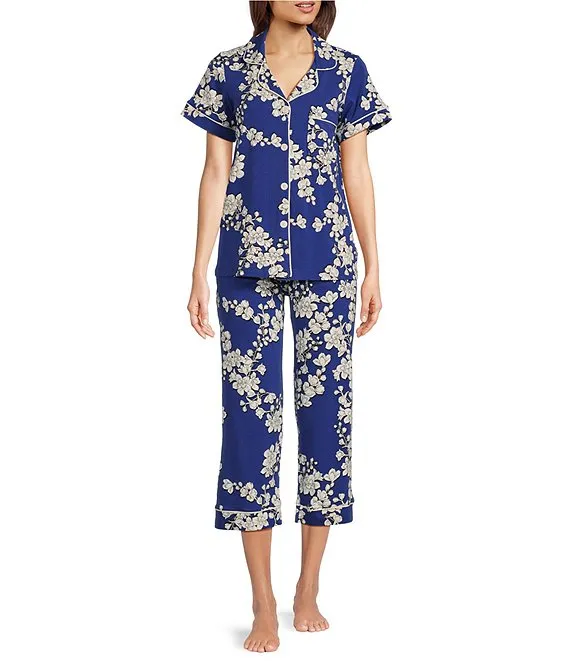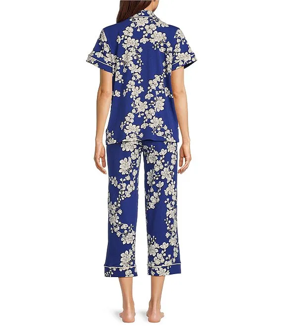 Shadow Blossom Floral Print Knit Cropped Pajama Set