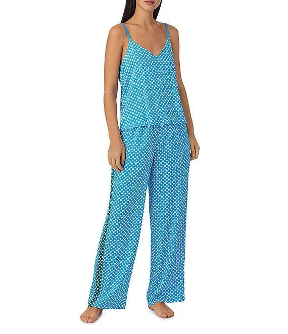 Woven Aqua Dot Sleeveless V-Neck Cami & Pant Pajama Set