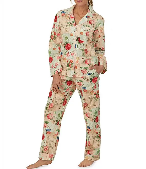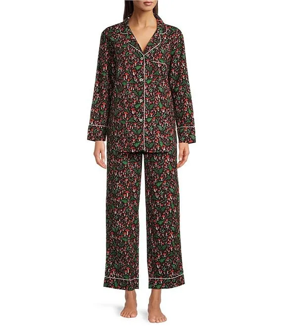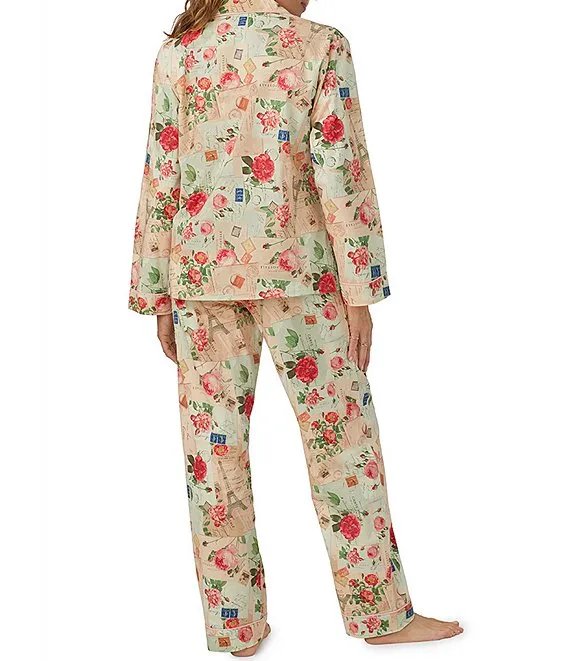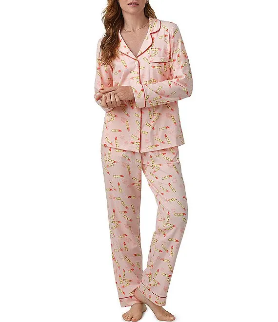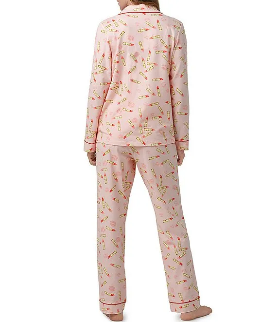Bedhead Pajamas Jersey Knit Lipstick Print Long Sleeve Notch Collar Long Pant Pajama Set