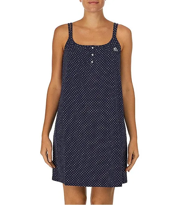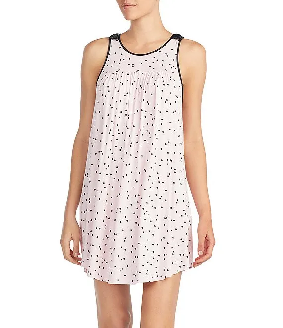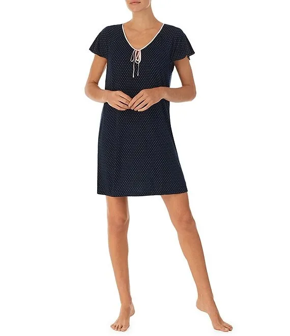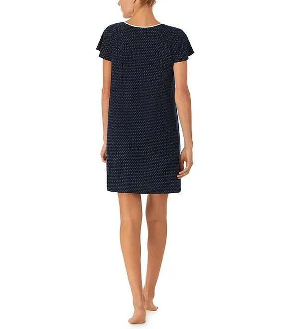 kate spade Pin Dot Print Short Flutter Sleeve V-Neck Knit Nightgown