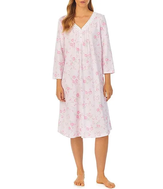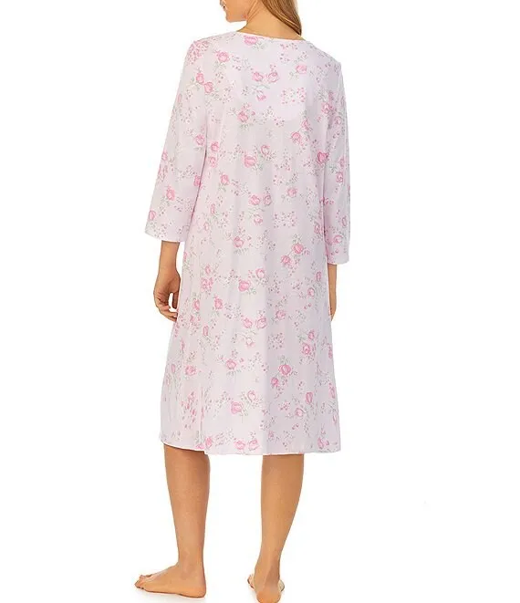 Rose Floral 3/4 Sleeve V-Neck Cotton Jersey Waltz Nightgown