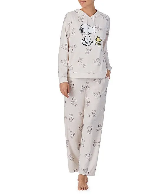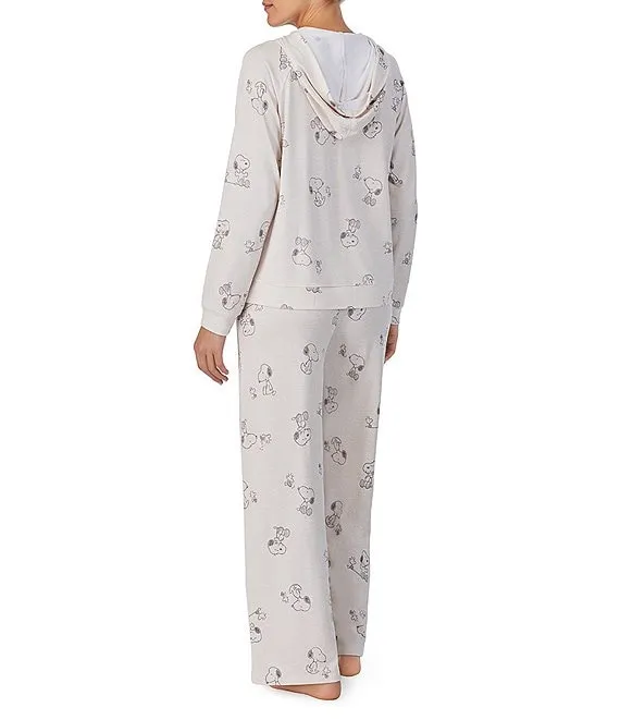 Snoopy Toss Print Long Sleeve Hoodie & Wide Leg Pant Pajama Set