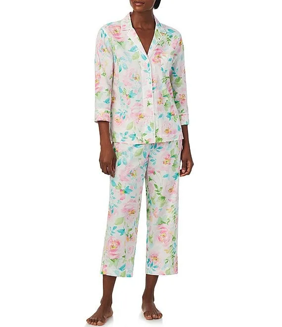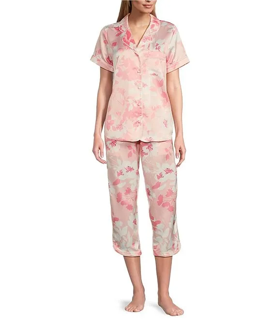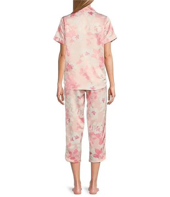 Satin Floral Print Satin Woven Top & Capri Coordinating Pajama Set