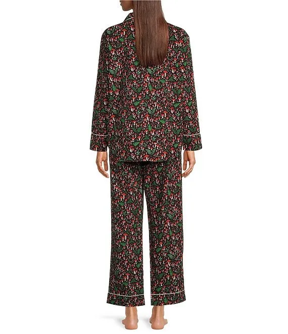 Mushroom Print Long Sleeve Notch Collar Woven Pajama Set
