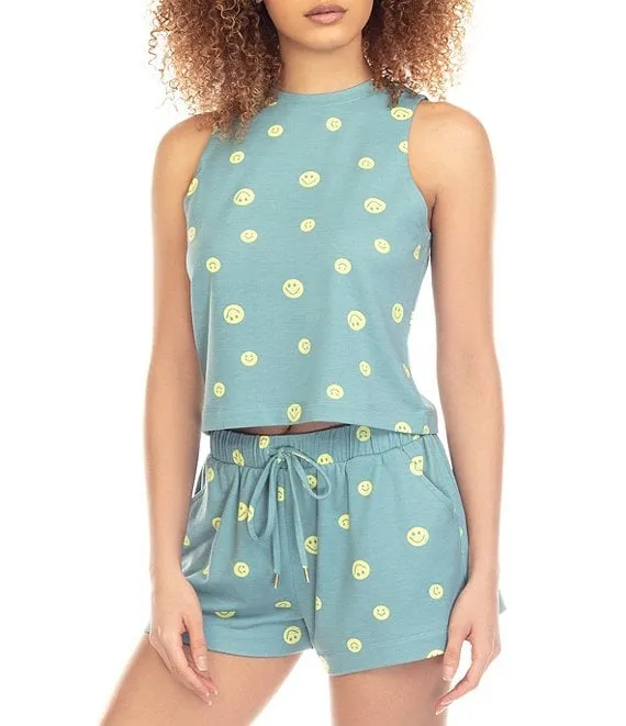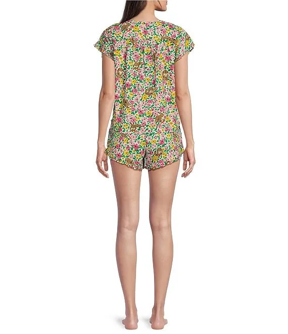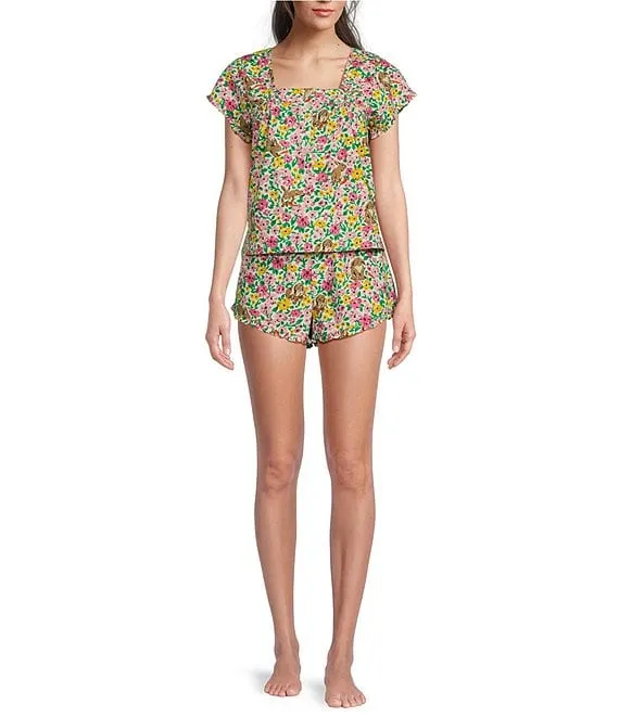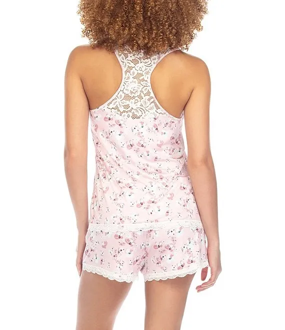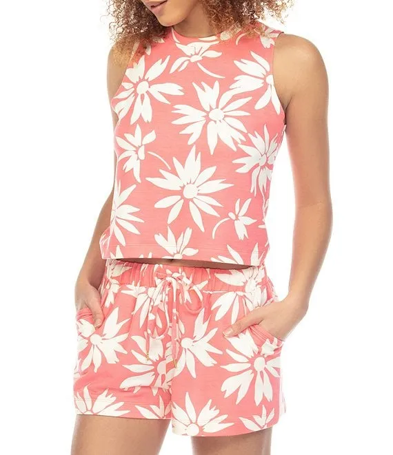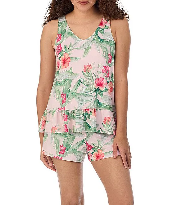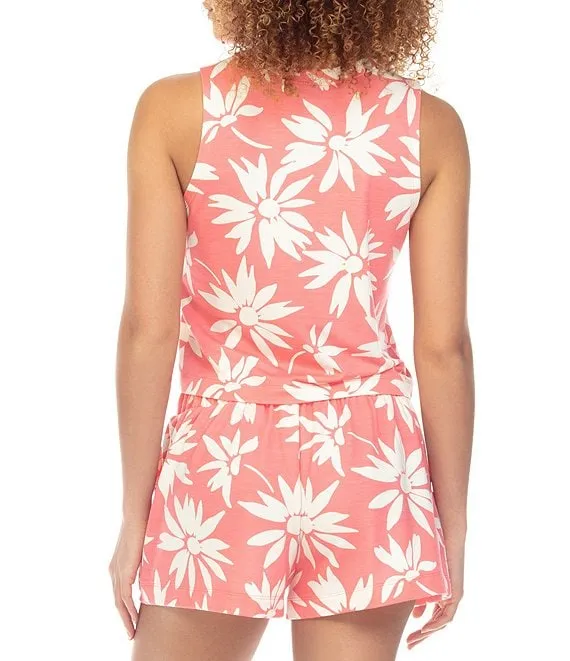 Floral Print V-Neck Sleeveless Knit Short Pajama Set