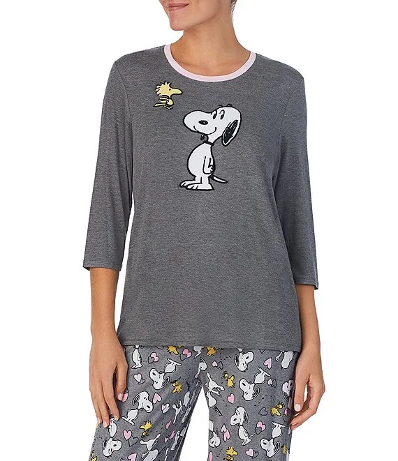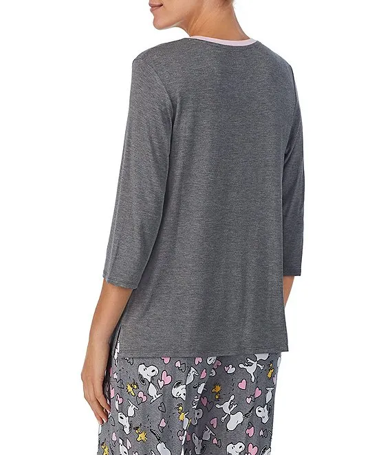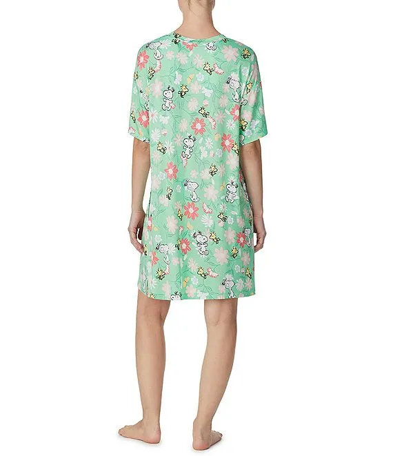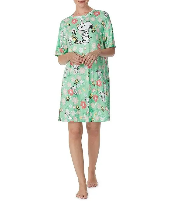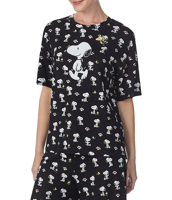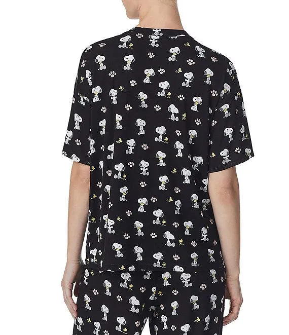 Short Sleeve Round Neck Coordinating Snoopy Print Knit Jersey Sleep Shirt