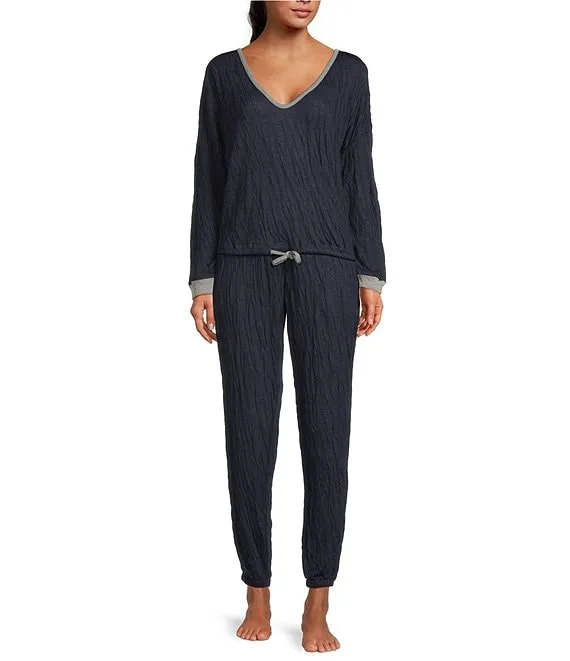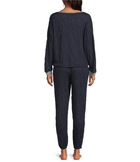 Long Sleeve Scoop Neck Crinkled Jersey Knit Lounge Set