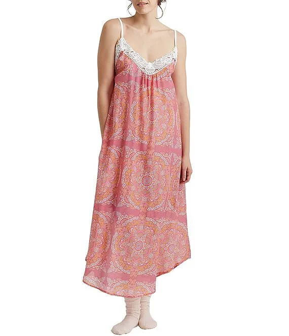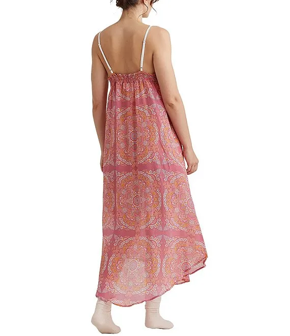Allover Printed Woven Sleeveless V-Neck Maxi Nightgown