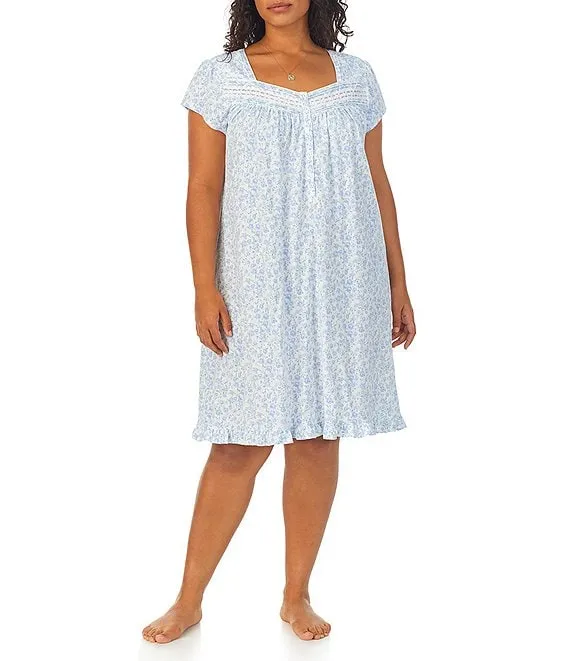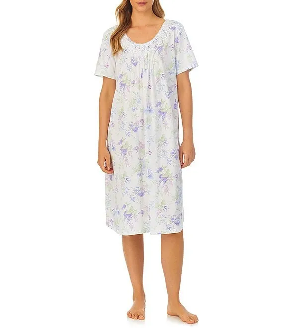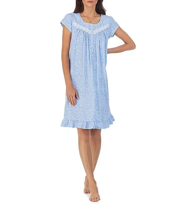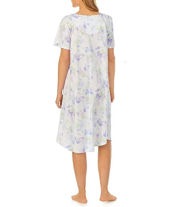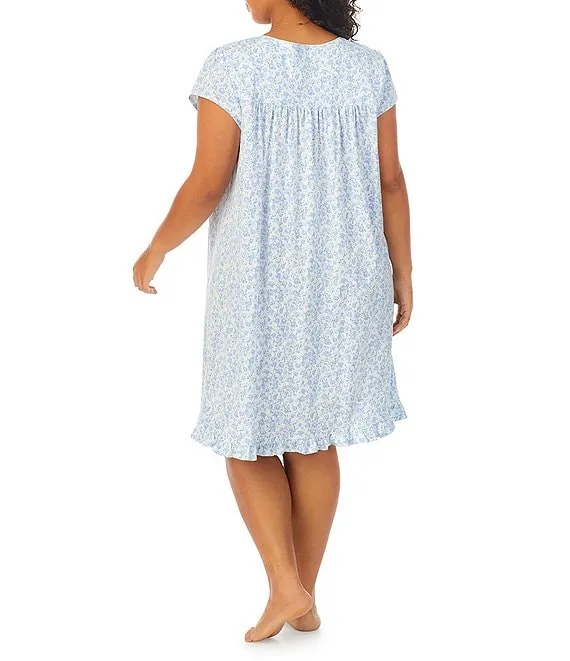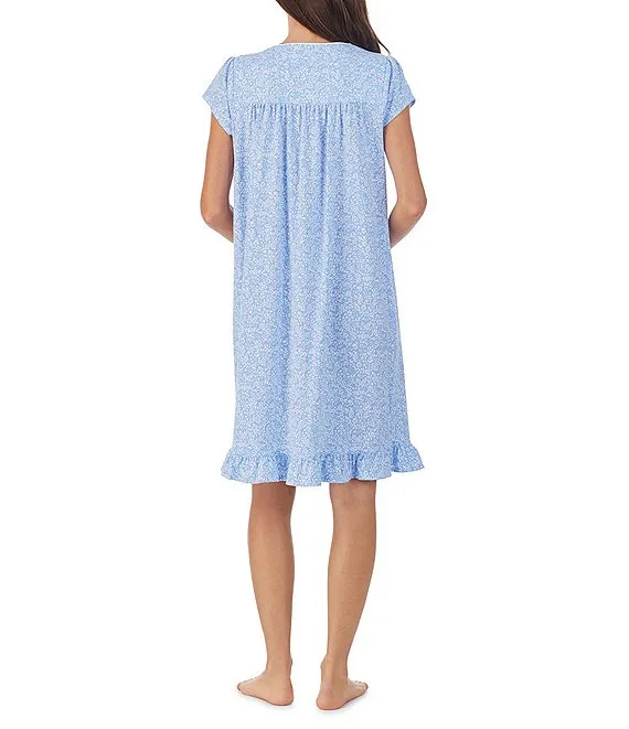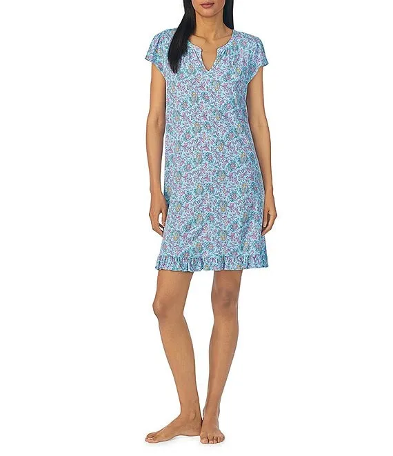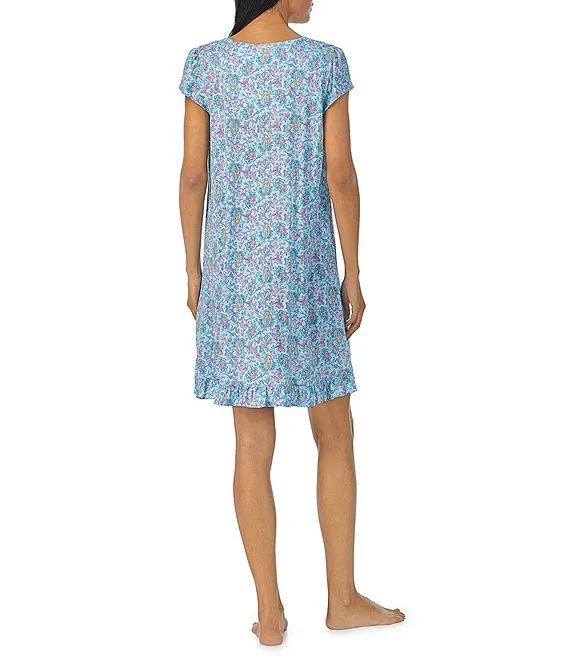 Lauren Ralph Lauren Short Sleeve Split Neck Cotton Knit Paisley Flounce Nightgown