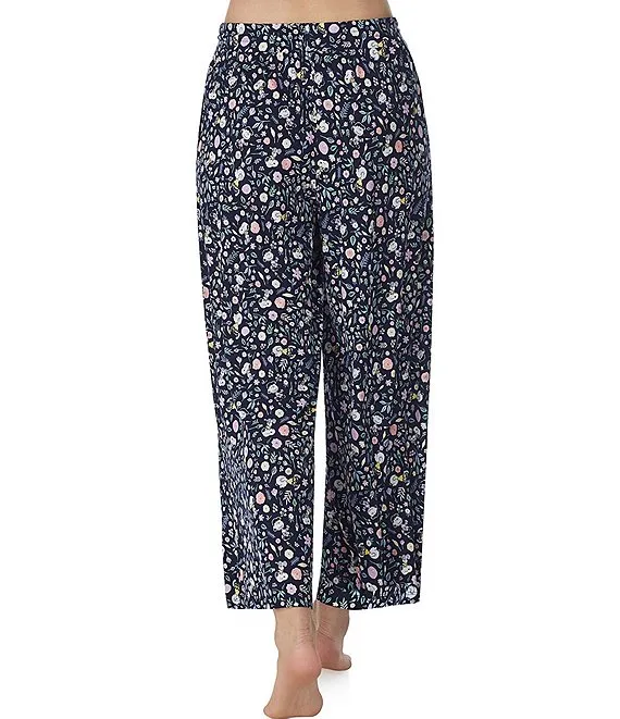 Ditsy Floral Stretch Jersey Knit Elastic Drawstring Tie Waist Pocketed Coordinating Sleep Capri