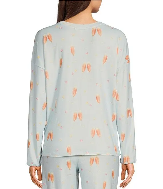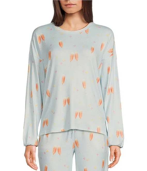 Bubbly Print Jersey Round Neck Long Sleeve Coordinating Sleep Top