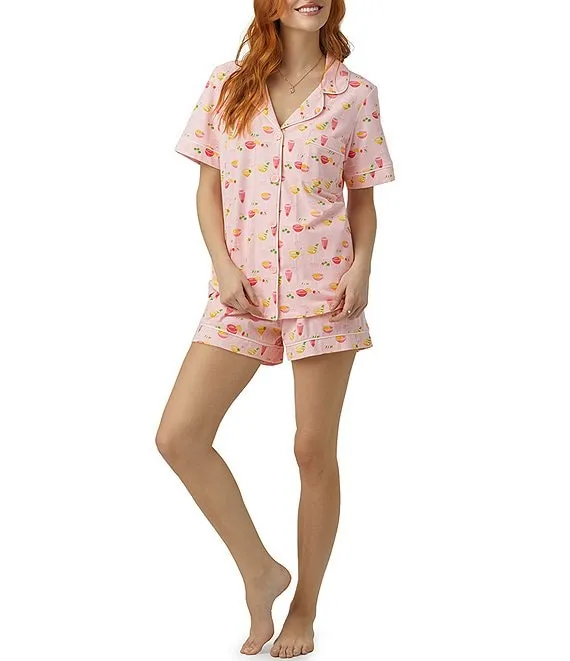 Pink Mixology Short Sleeve Notch Collar Jersey Knit Shorty Pajama Set