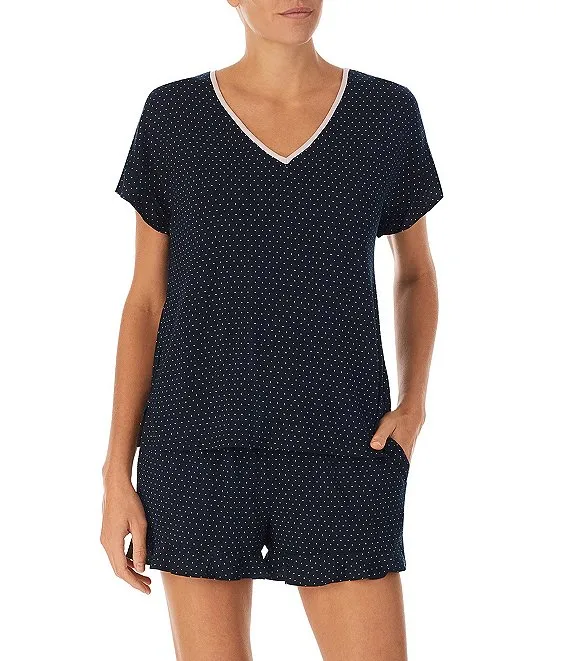 kate spade Pin Dot Short Sleeve V-Neck Jersey Knit Shorty Pajama Set