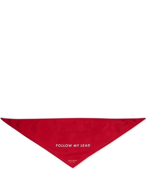 • Your furry fashionista will love this chic bandana from kate spade new york is double-sided and reads "WOOF" and "FOLLOW MY LEAD" on opposite sides.