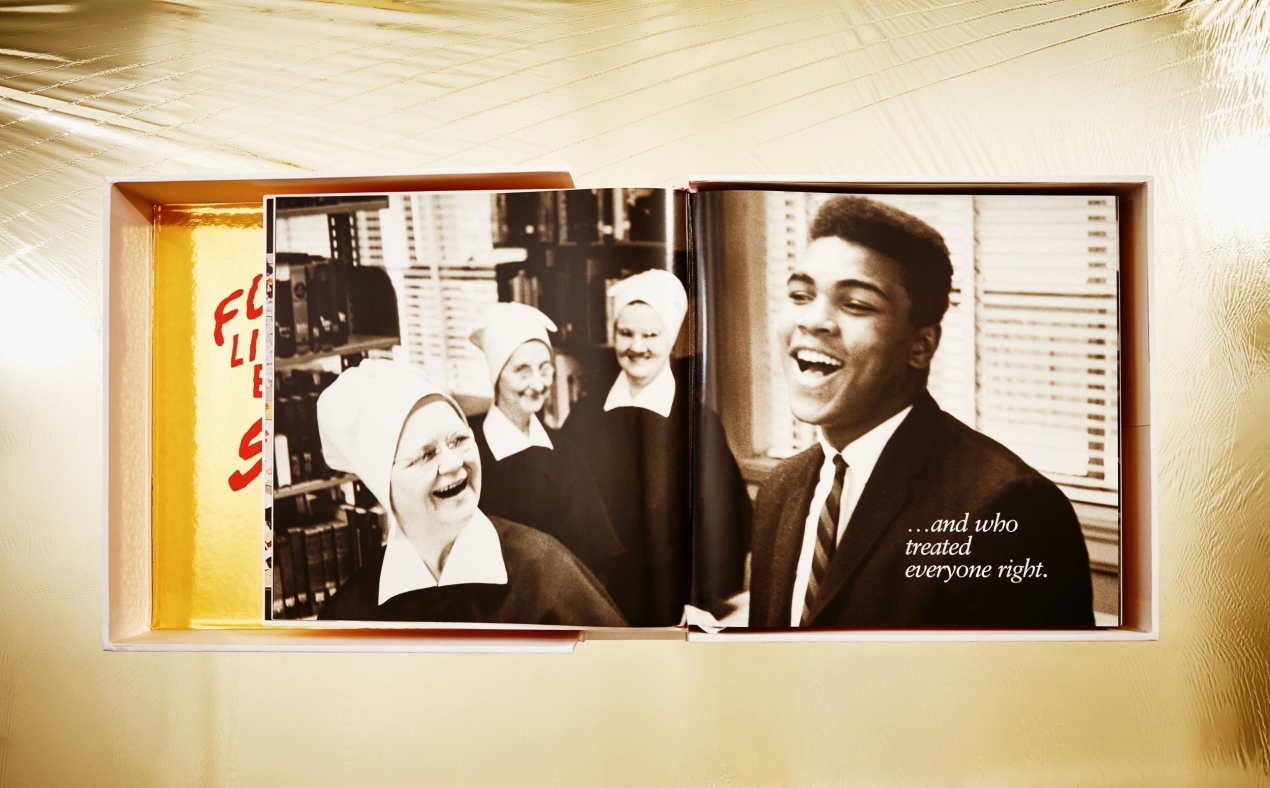 • A silk-covered box illustrated with Neil Leifer��s iconic 1966 photo Ali vs Williams.