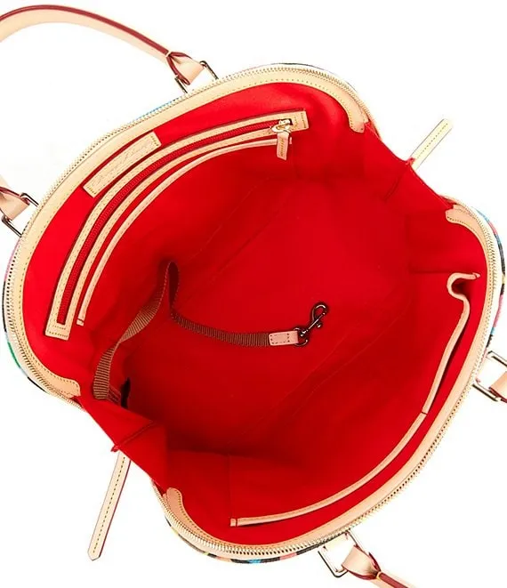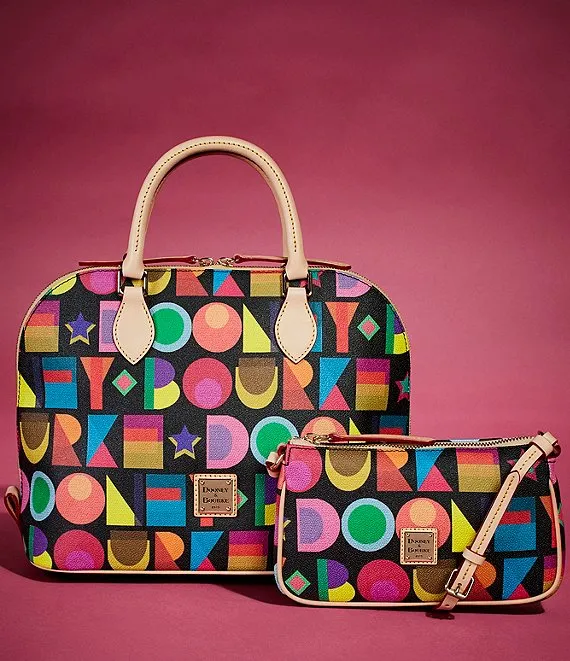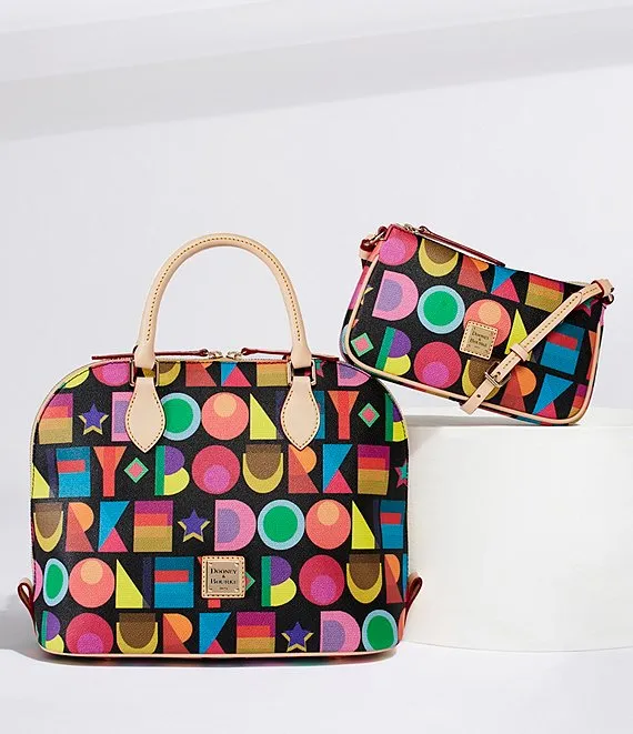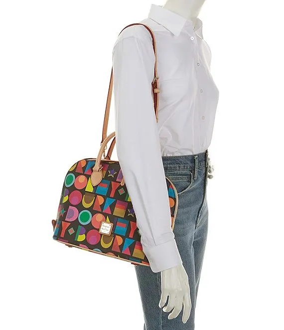 From Dooney & Bourke, the Art Deco Zip Satchel Bag features: