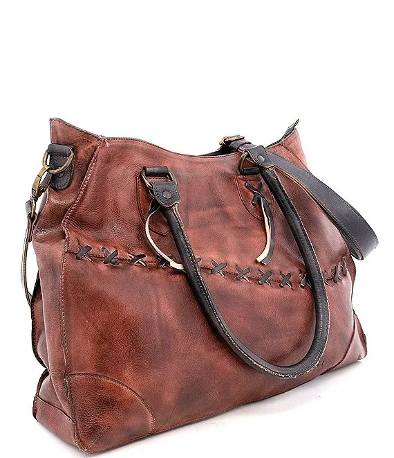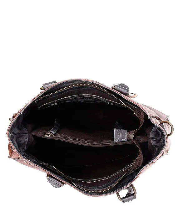 From Bed Stu, the Bruna Stitch Tanned Rustic Leather Satchel Bag features: