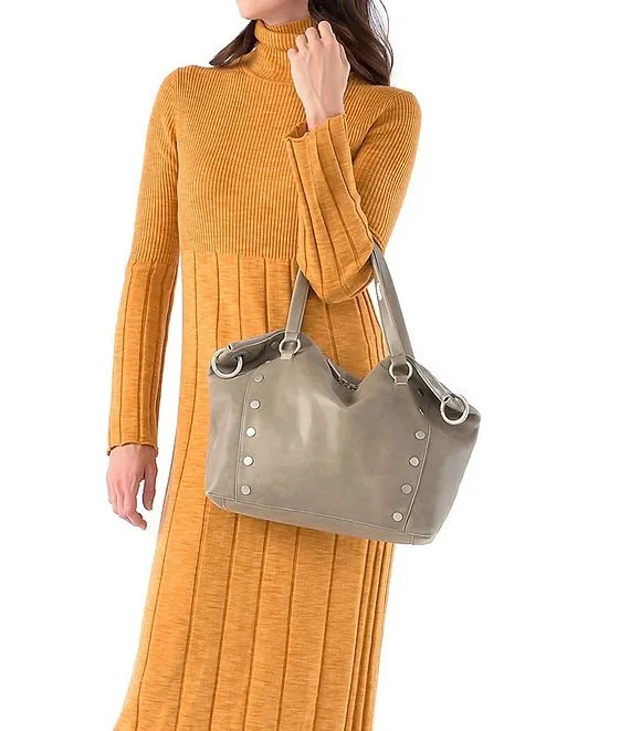 From Hammitt, the Daniel Large Silver Studded Soft Leather Satchel Tote Bag features: