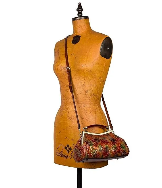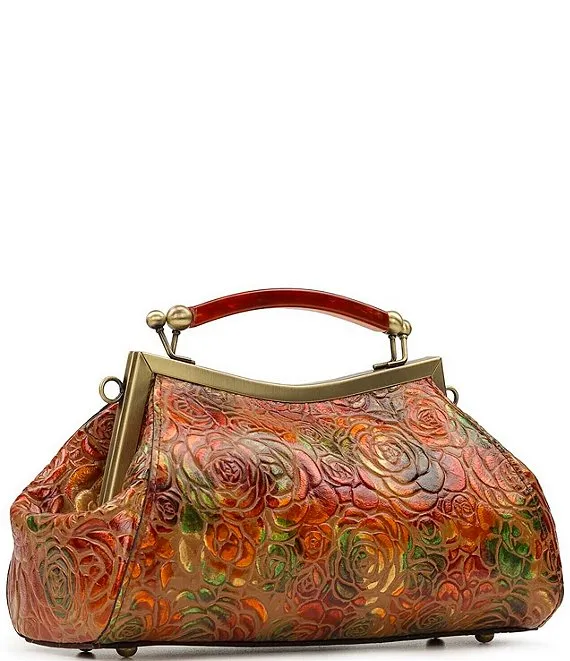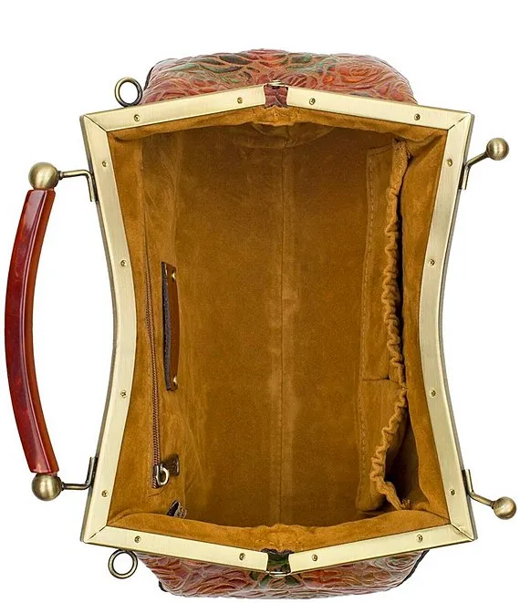 From Patricia Nash, the Kelmscott Burnished Rose Frame Crossbody Satchel Bag features: