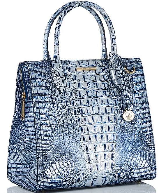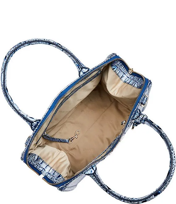 From the Melbourne Collection by BRAHMIN, the Coastal Blue Caroline Satchel Bag features: