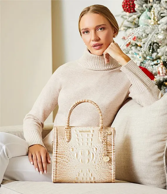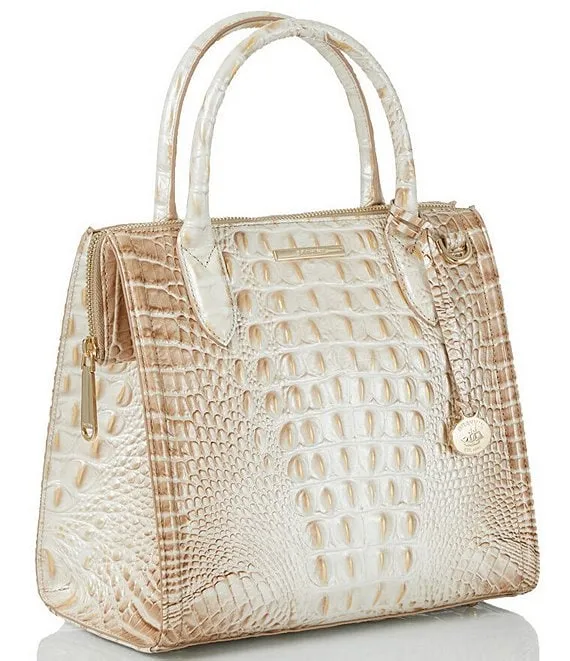 From the Melbourne Collection by BRAHMIN, the Contour Small Caroline Crocodile Embossed Satchel Bag features: