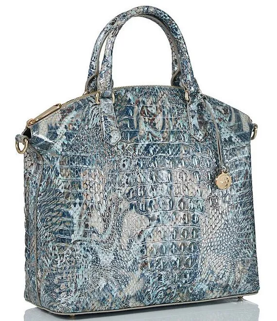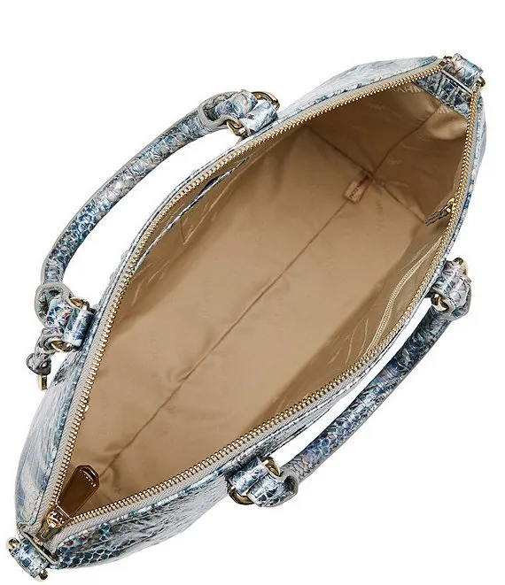 From the Melbourne Collection by BRAHMIN, the Duxbury Icy Python Leather Satchel Bag features: