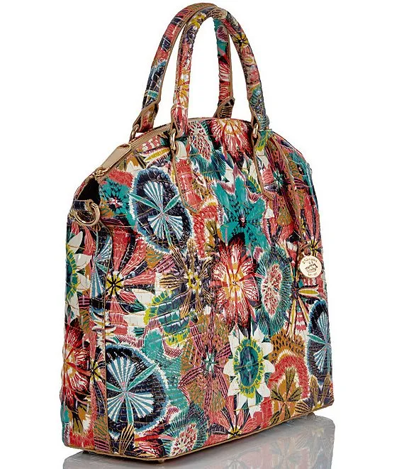 From the Melbourne Collection by BRAHMIN, the Large Duxbury Desert Bloom Leather Satchel Bag features: