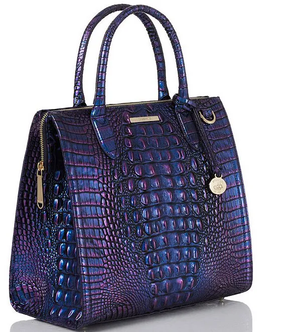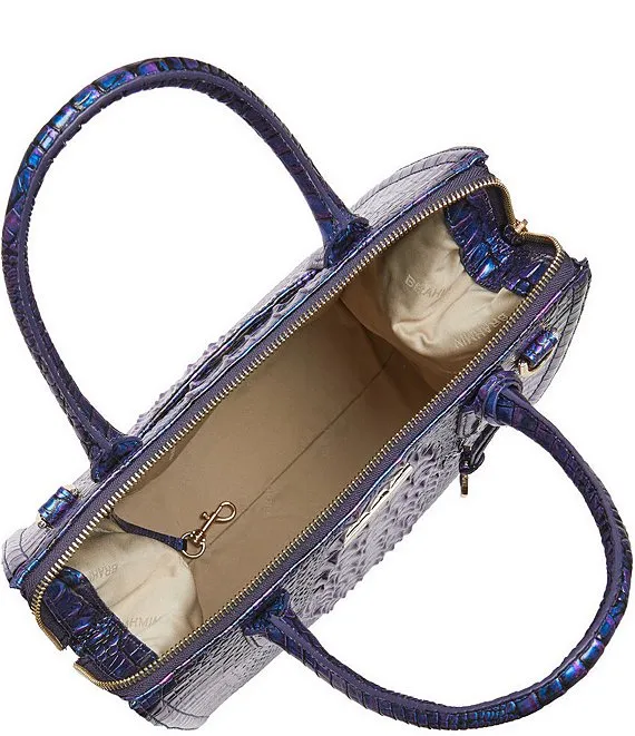 From the Melbourne Collection by BRAHMIN, the Neptune Metallic Caroline Crocodile-Embossed Satchel Bag features: