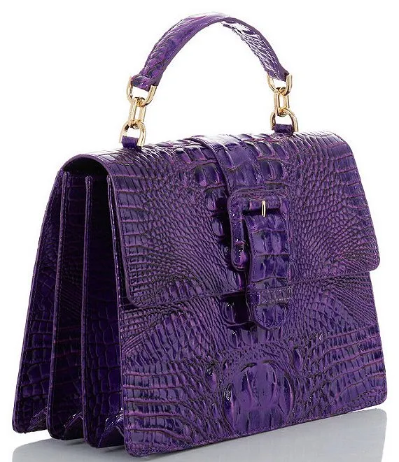 From the Melbourne Collection by BRAHMIN, the Royal Purple Hallie Satchel Bag features: