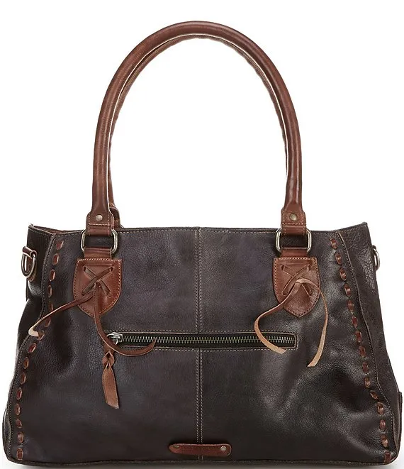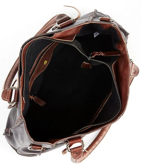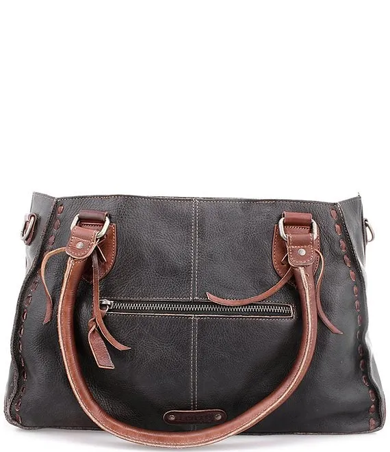 From Bed Stu, the Rockababy Black Teak Rustic Leather Satchel Bag features: