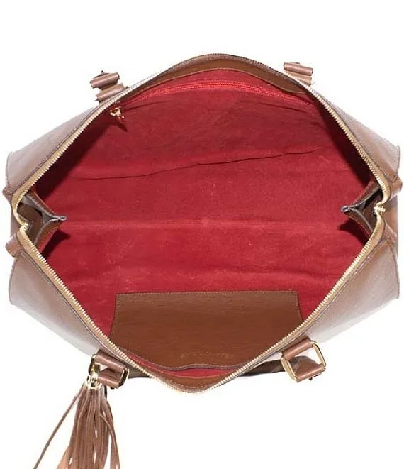 From Kelly-Tooke, the Soho Leather Barrel Tassel Satchel Bag features: