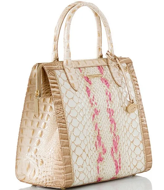 From the Valentia Collection by BRAHMIN, the Apricot Rose Caroline Satchel Bag features: