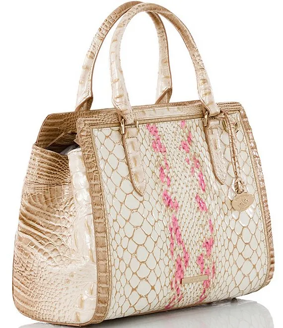 From the Valentia Collection by BRAHMIN, the Apricot Rose Small Finley Carryall Satchel Bag features: