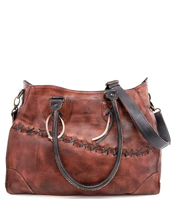 Bruna Stitch Tanned Rustic Leather Satchel Bag