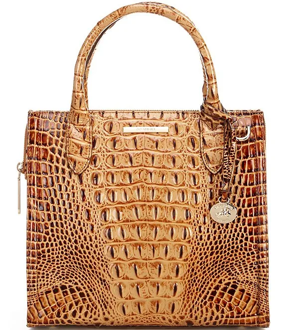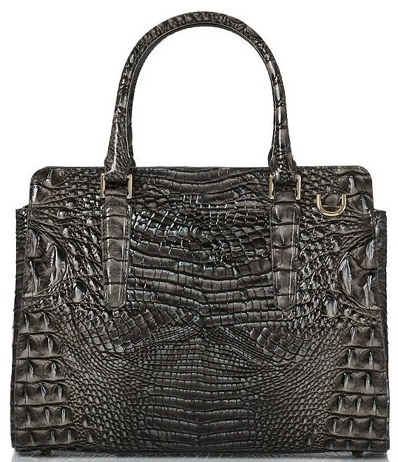 Melbourne Collection Large Duxbury Crocodile-Embossed Dome Satchel Bag