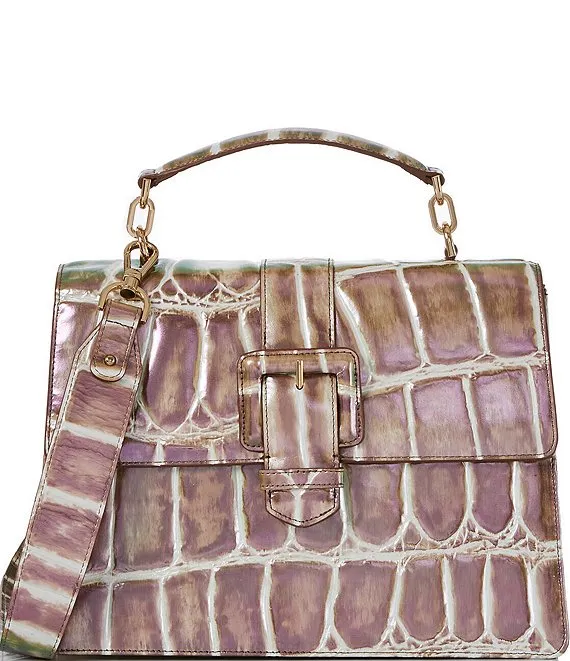 Melbourne Collection Contour Small Caroline Crocodile Embossed Satchel Bag