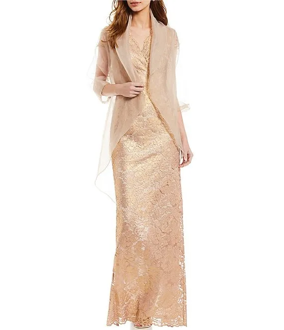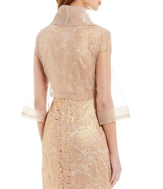 Adrianna Papell Organza 3/4 Sleeve Tie Front Wrap Jacket